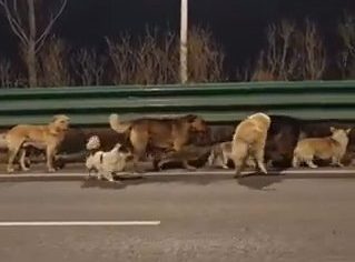 One onlooker told Chinese outlet Dahe Daily: ‘They resemble a band of little brothers in distress,moving in unison – nothing like stray dogs.’